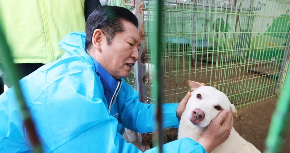 정청래 민주당 대표가 취임 100일을 맞아 유기견 보호소 봉사활동을 선택했습니다