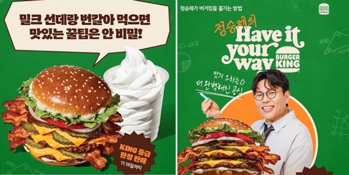 프리미엄 햄버거 브랜드 버거킹이 브랜드 캠페인 'Have it your way'의 두 번째 주인공으로 국민 수학 강사 정승제를 선정했습니다.