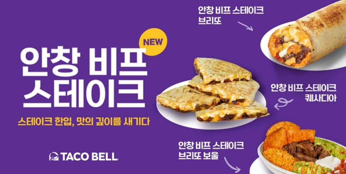 KFC 코리아가 운영하는 타코벨코리아가 프리미엄 안창살을 활용한 안창 비프 스테이크 3종 메뉴를 새롭게 선보인다고 10일 발표했습니다.
