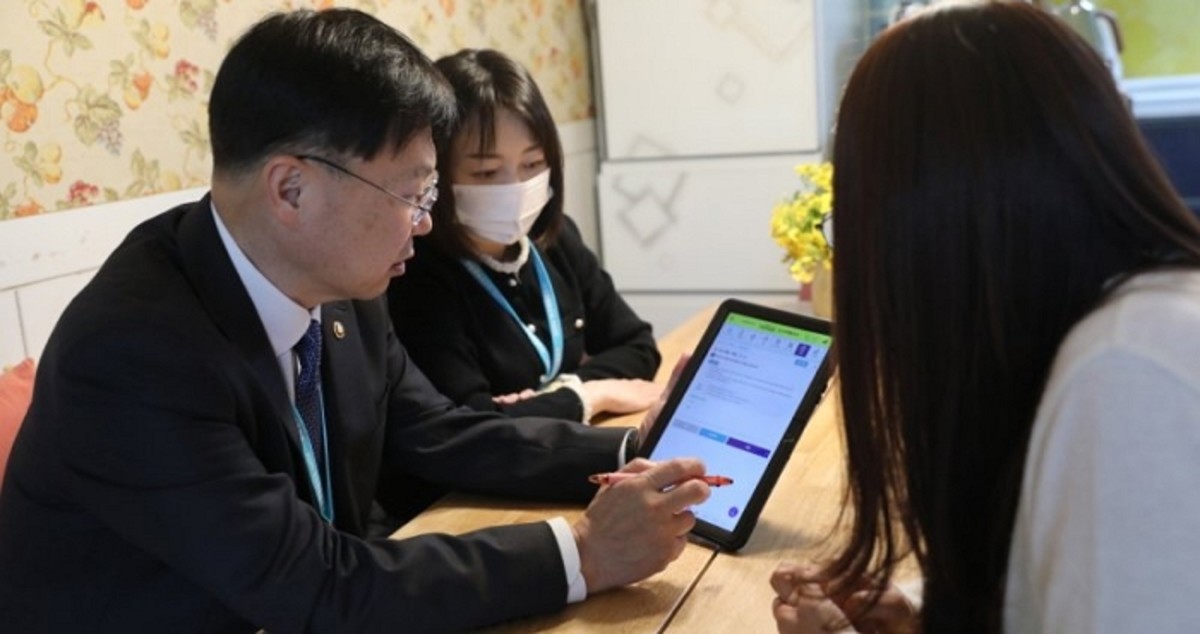 안형준 국가데이터처장이 인구주택총조사 방문 조사 현장 상황 점검을 위해 5일 대전 서구의 가정에 방문했다. 인구주택총조사 조사 대상자에게 태블릿PC를 통해 방법에 대해 설명하고 있다. 국가데이터처 제공. / 뉴스1