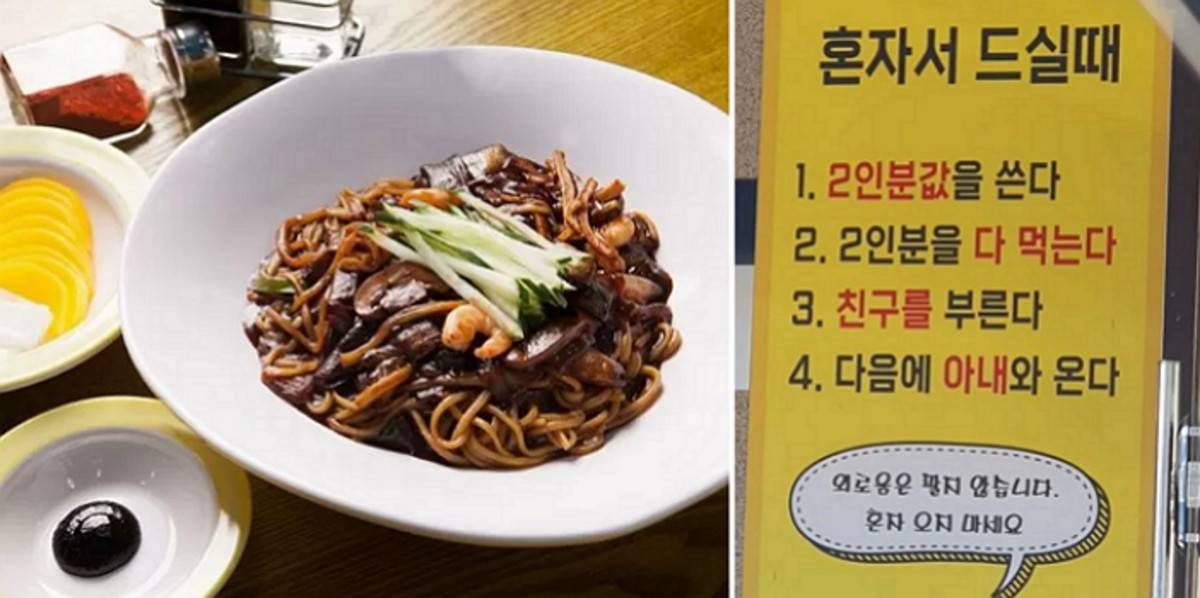한 짜장면집의 '혼밥 손님 거부' 안내문이 최근 온라인상에서 논란이 되고 있습니다.