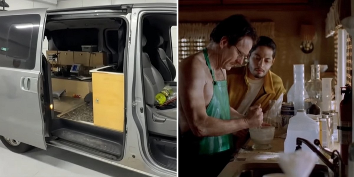 평범한 고등학교 화학교사가 인적이 드문 곳에 차를 세워두고 필로폰을 제조하는 내용을 다룬 유명 드라마 '브레이킹 배드'를 모방한 것으로 보입니다.