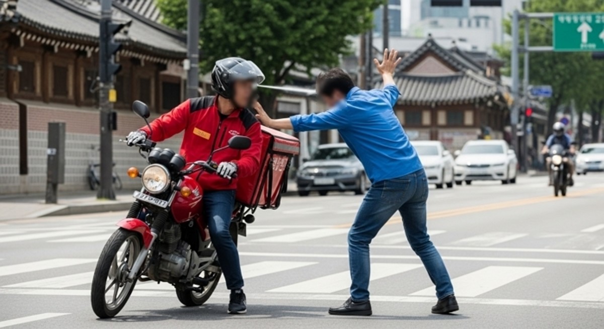 상황은 보행자 신호가 바뀌면서 급변했습니다. A씨가 횡단보도를 건너려는 순간, 배달기사는 A씨의 얼굴을 향해 침을 뱉고 반대편 차선으로 도주했습니다.