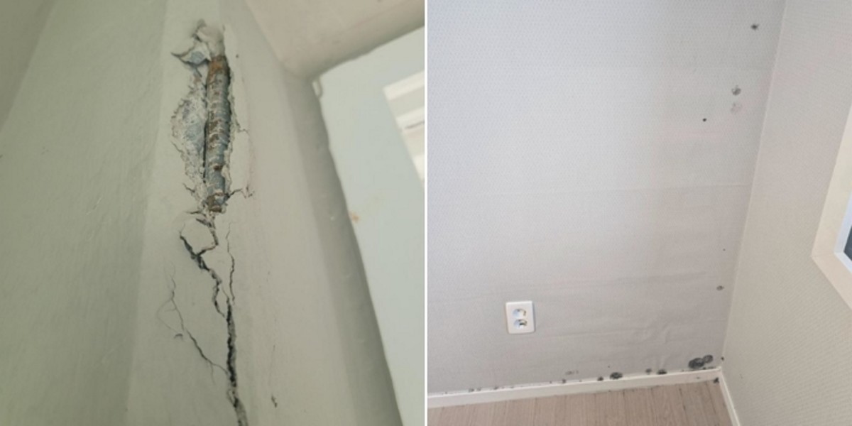 입주한 지 얼마 되지 않은 신축아파트에서 벽에 금이 가더니 철근까지 튀어나오는 하자가 발생했다는 사연이 온라인에서 화제가 되고 있습니다.