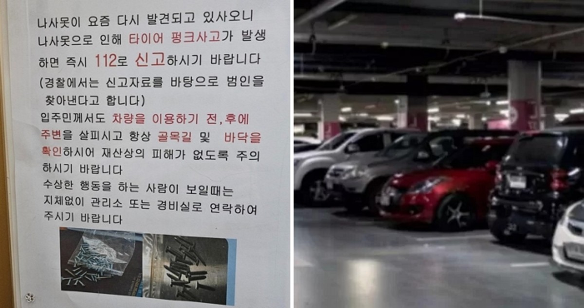 울산의 한 아파트 단지에서 누군가가 주차장에 나사못을 고의로 뿌리는 악질적인 행위가 반복되면서 입주민들이 불안에 떨고 있습니다.