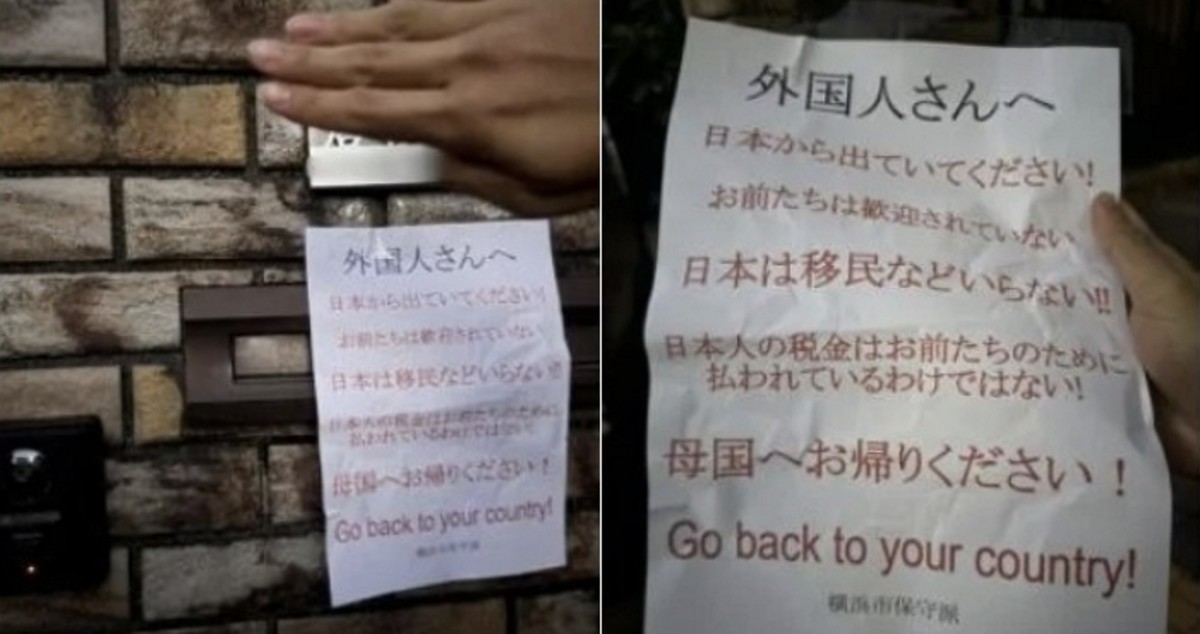지난 15일 홍콩 사우스차이나모닝포스트(SCMP)는 요코하마에 거주하는 말레이시아 출신 A씨가 지난 11일 자신의 SNS에 혐오 메시지가 담긴 쪽지 사진을 공개했다고 보도했습니다.