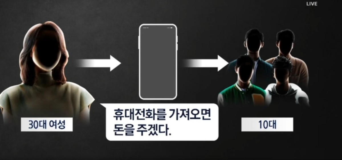경찰 조사 과정에서 10대 가해자들은 자신들에게 휴대전화를 빼앗아 오라고 지시한 배후가 있다고 진술했습니다. 수사 결과, 30대 여성이 SNS를 통해 이들에게 접근해 남성의 휴대전화를 가져오면 돈을 주겠다고 제안한 사실이 드러났습니다.
