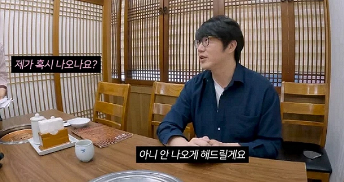 그런데 고기를 굽기 위해 나타난 가게 직원이 "제가 혹시 나오나요?"라고 질문하자, 성시경은 "안나오게 해드릴게요"라며 모자이크 처리를 약속했습니다.