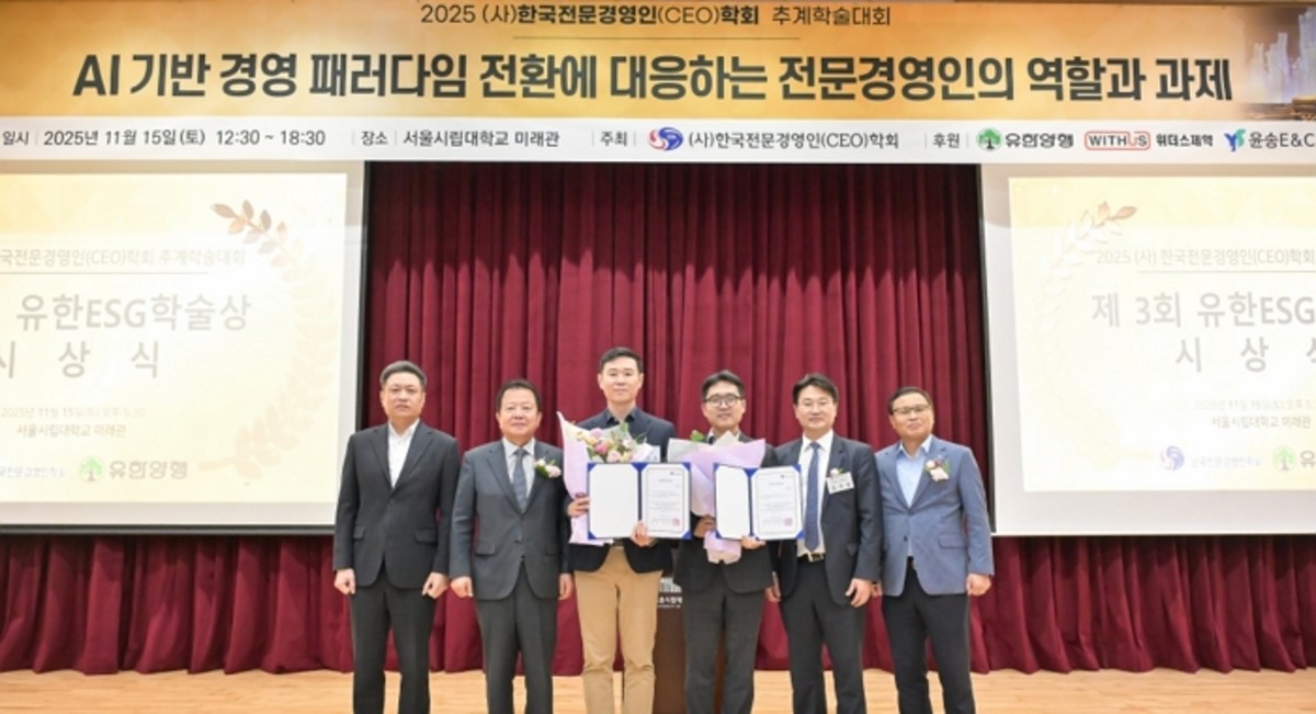 이번 시상식은 ESG경영 분야의 학술연구 활성화를 목적으로 마련된 자리로, 한국전문경영인학회가 주관하고 유한양행이 후원하는 권위 있는 학술상입니다. 이 상은 2023년 신설되어 국내외 ESG경영 관련 이론, 정책, 실무 분야의 우수한 연구를 발굴하고 지원하는 역할을 하고 있습니다.