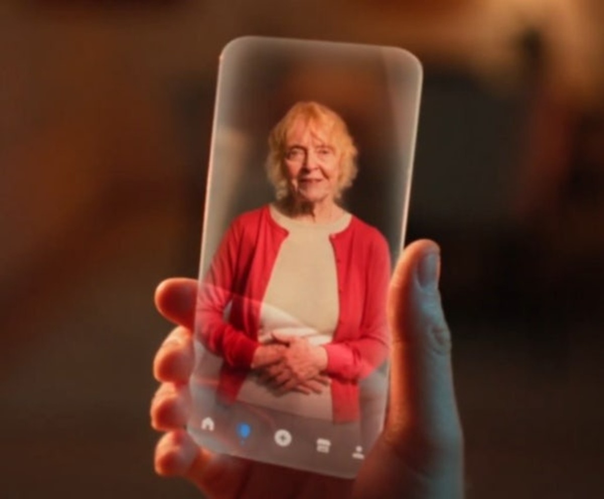 광고 영상은 시간의 흐름에 따른 스토리로 구성되어 있습니다. 여성이 아이를 출산한 후 아기를 품에 안고 AI로 구현된 어머니와 대화를 나누는 모습이 이어지며, 아이가 성장해 성인이 된 후에도 스마트폰 속 'AI 할머니'와 지속적으로 소통하는 장면까지 보여줍니다.