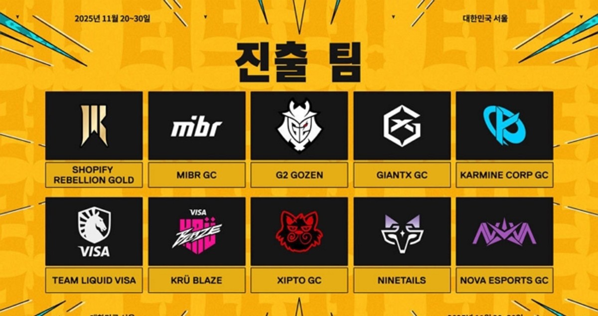 아메리카스 지역 대표로는 4개 팀이 출전합니다. 북미 스테이지 2 우승팀 쇼피파이 레벨리온 골드, 브라질 우승팀 팀 리퀴드 브라질, 라틴 아메리카 대표 KRU 블레이즈, 아메리카스 최종 선발전 통과팀 메이드 인 브라질 GC가 서울 무대에 오릅니다.