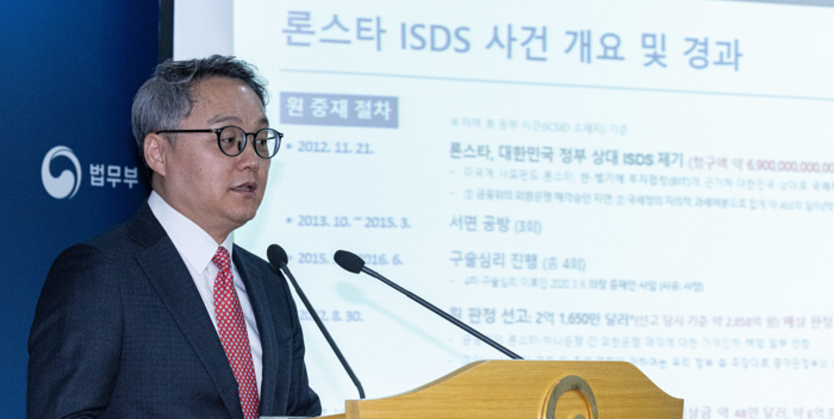 지난 19일 정홍식 법무부 국제법무국장은 과천 법무부 청사에서 4000억 규모의 론스타 소송이 승리로 마무리 될 수 있었던 핵심 내용에 대해 설명했습니다.