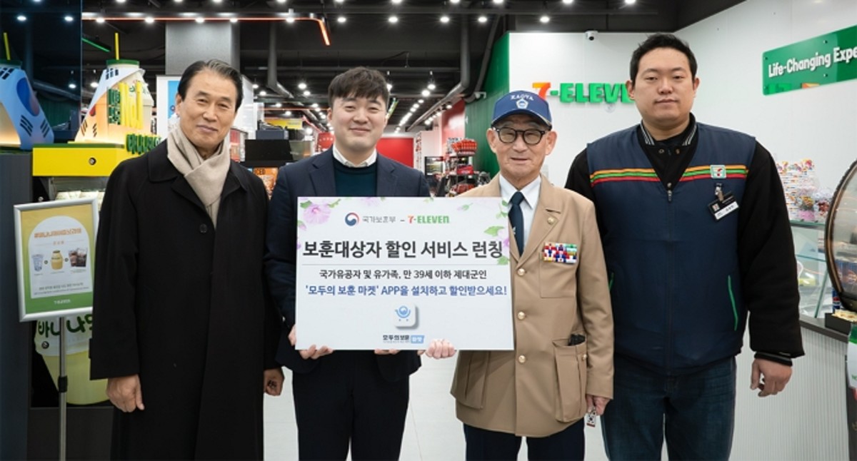 세븐일레븐은 국가보훈부 공공협력사업 '국가유공자 할인서비스'를 소상공인연합회 회원사 중 처음으로 도입해 보훈가족과 제대군인에 대한 생활 밀착 지원에 나섰습니다. 이번 할인서비스는 국가보훈부가 새롭게 선보인 '보훈 마켓' 앱과 연계해 제공되는 전용 혜택으로, 국가유공자 및 선순위 유가족, 그리고 40세 미만 제대군인 등 약 630만 명이 이용할 수 있습니다.
