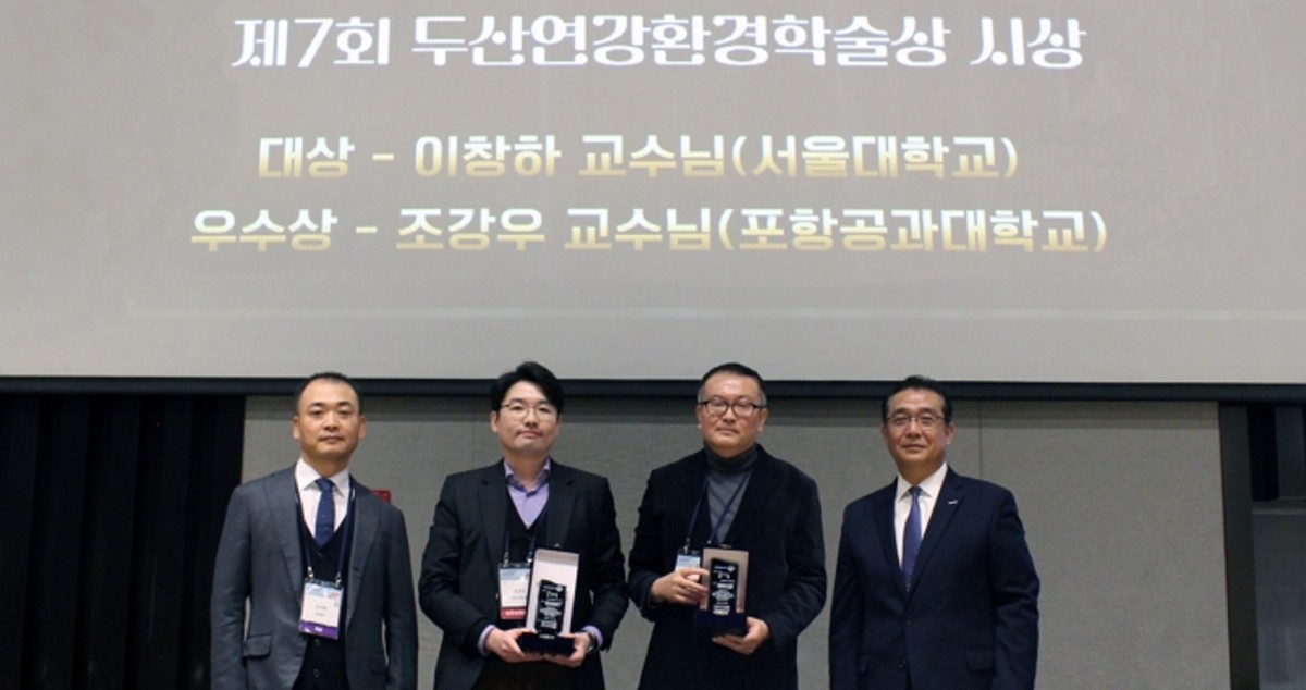 두산연강재단은 20일 박용현 이사장 주관으로 지난 19일 제주 신화월드에서 열린 대한환경공학회 학술대회 현장에서 '2025 두산연강환경학술상' 시상식을 진행했다고 발표했습니다.