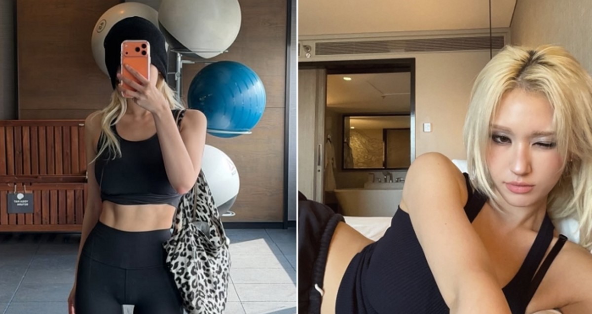 공개된 사진에는 여행지 헬스장에서 찍은 거울 셀카 등이 담겼는데요. 블랙 톱과 바이커 쇼츠, 조거 팬츠를 매치한 애슬레저 룩을 완벽하게 소화해 눈길을 끌었습니다.