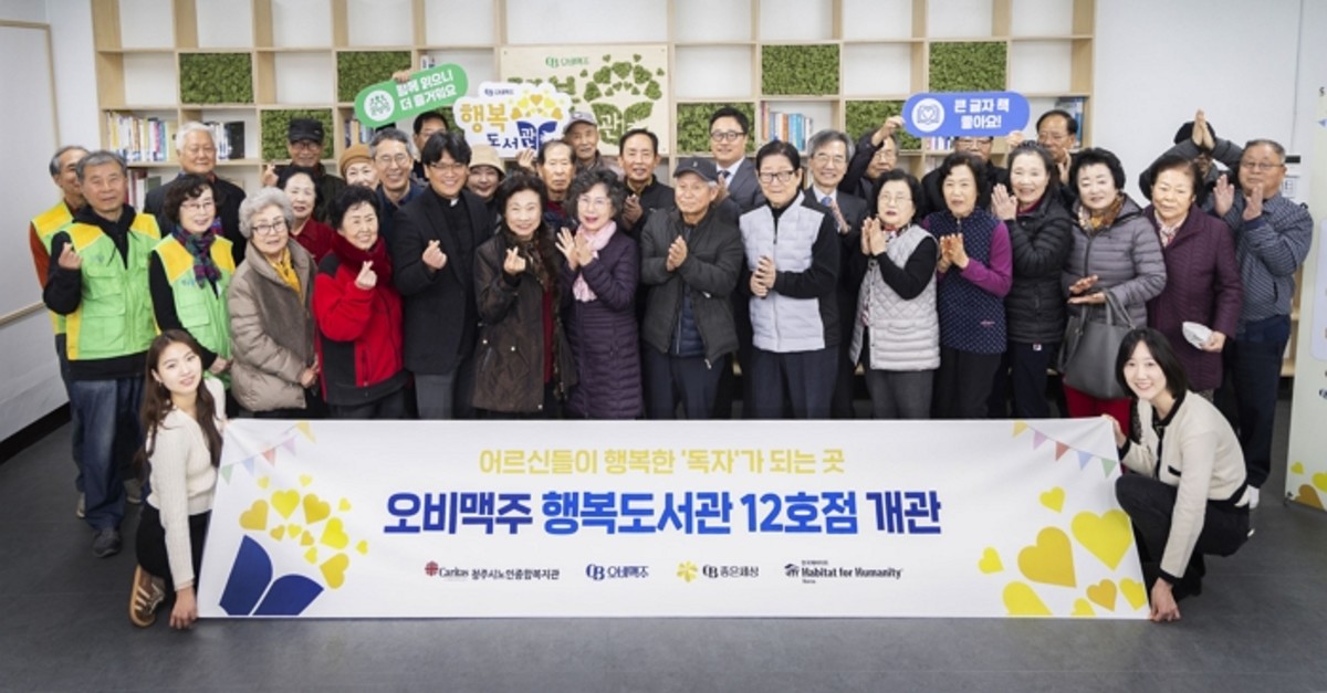 오비맥주가 시니어 대상으로 확대한 사회공헌 활동의 일환으로 청주시종합노인복지관에 행복도서관 12호점을 개관했습니다.