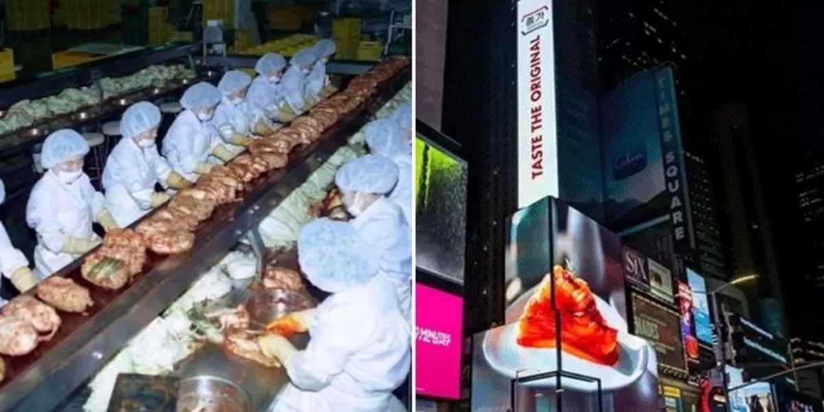 대상은 지난 2022년 10일 미국 뉴욕 맨해튼 타임스스퀘어의 아메리칸이글 빌딩에서 종가(JONGGA) 브랜드 김치 광고를 선보였다 / 대상