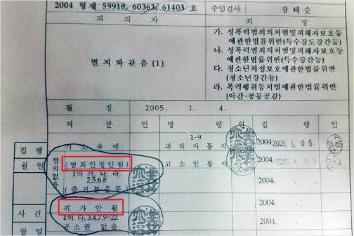 A씨는 '범죄인정안됨', '죄가안됨'이 표시된 검찰 자료를 공개하며 "나처럼 무혐의 받은 이들도 강간범이라는 낙인이 찍혀 살아왔다"고 울분을 토로했다.