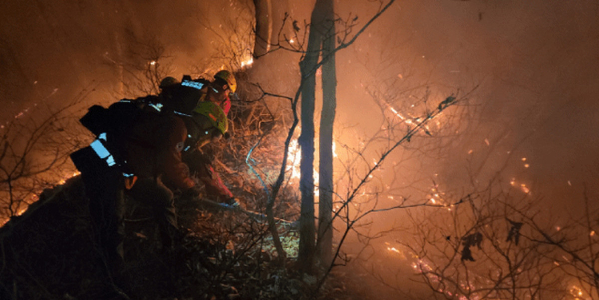 강한 바람과 급경사 지형으로 진화 작업이 난항을 겪으면서, 당국은 23일 오전 4시를 기해 산불 대응 1단계를 발령했습니다.
