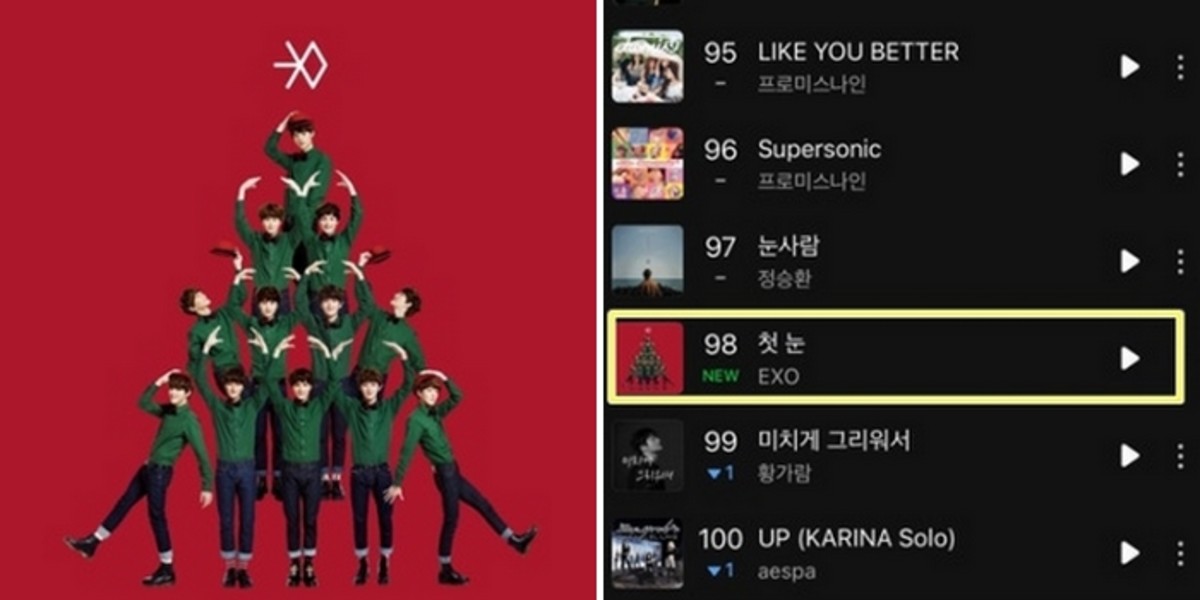 23일 기준으로 엑소의 '첫 눈'이 멜론 일간차트 98위에 새롭게 진입하며 올해도 어김없는 겨울 연금을 시작했습니다.