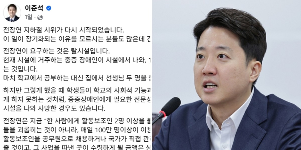 개혁신당 이준석 대표가 전국장애인차별철폐연대(전장연)의 지하철 시위에 대해 날선 비판을 제기했습니다.