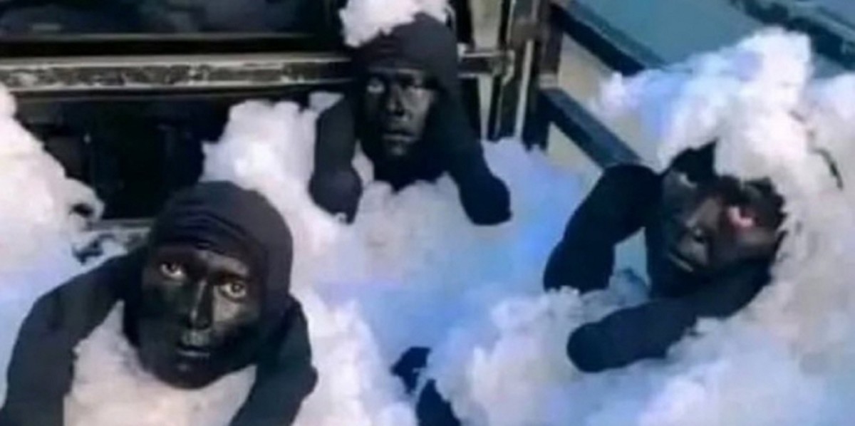 문제가 된 사진에는 양털로 덮인 의상을 입고 얼굴에 검은 페인트를 칠한 세 사람이 트럭 뒷좌석으로 보이는 곳에 앉아 있는 모습이 담겨 있었습니다.