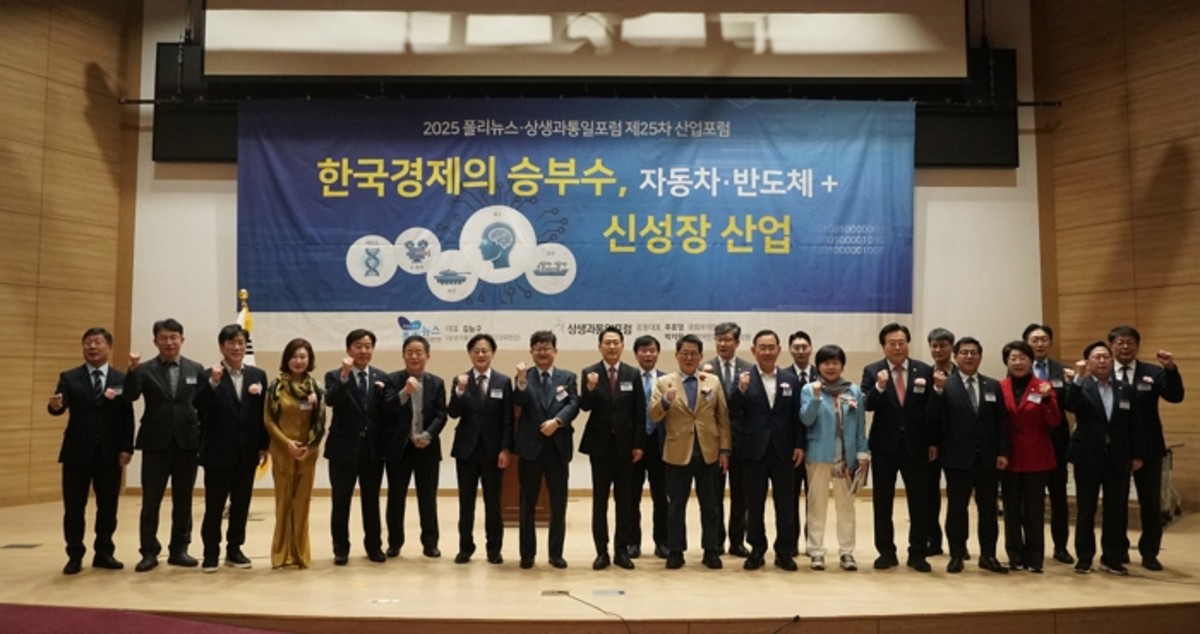 폴리뉴스와 상생과통일포럼이 지난 21일 서울 여의도 국회 의원회관에서 '한국경제의 승부수, 자동차·반도체+신성장 산업'을 주제로 제25차 산업포럼을 개최했습니다.