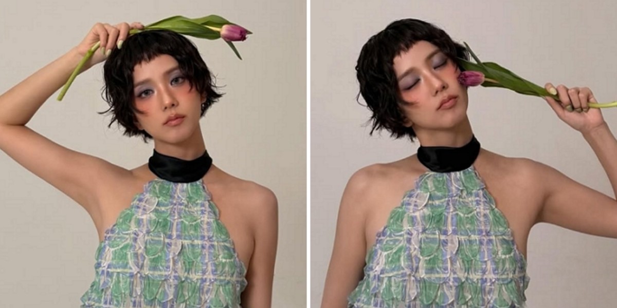 공개된 사진 속에서 지수는 홀터넥 드레스를 착용하고 다양한 포즈를 취하고 있습니다. 특히 살짝 젖은 듯한 숏컷 헤어와 파란 아이섀도우를 활용한 메이크업이 몽환적이고 신비로운 분위기를 자아내며 시선을 사로잡았습니다.