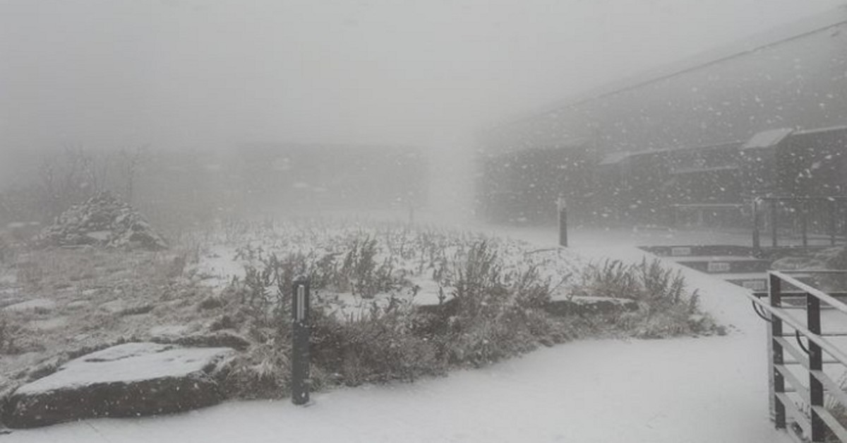 25일 첫눈이 내린 충북 단양 소백산 제2 연화봉 대피소 / 소백산북부사무소