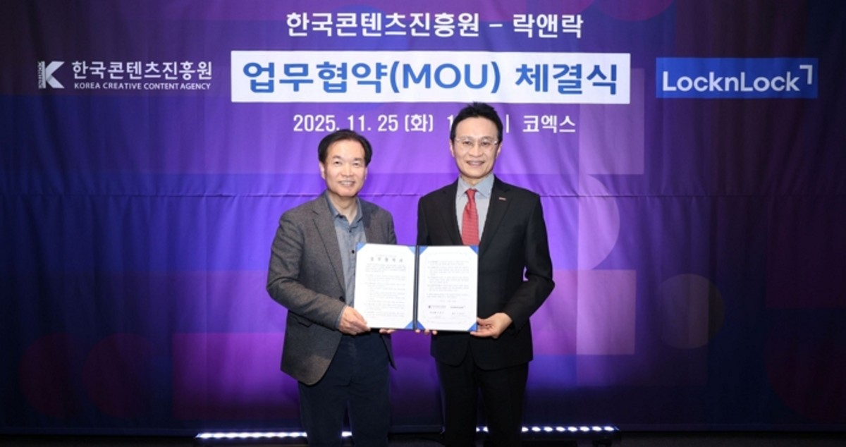 금번 업무 협약식은 지난 25일 코엑스에서 진행되었으며, 락앤락 천해우 부사장과 한국콘텐츠진흥원 유현석 원장직무대행 등이 참석한 가운데 개최되었습니다.
