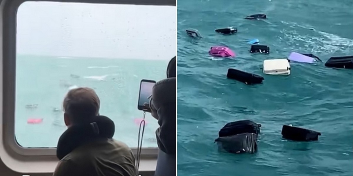 태국 해역을 지나던 한 페리 선박에서 승객들의 짐이 떠내려가는 사고가 발생했다 / TikTok
