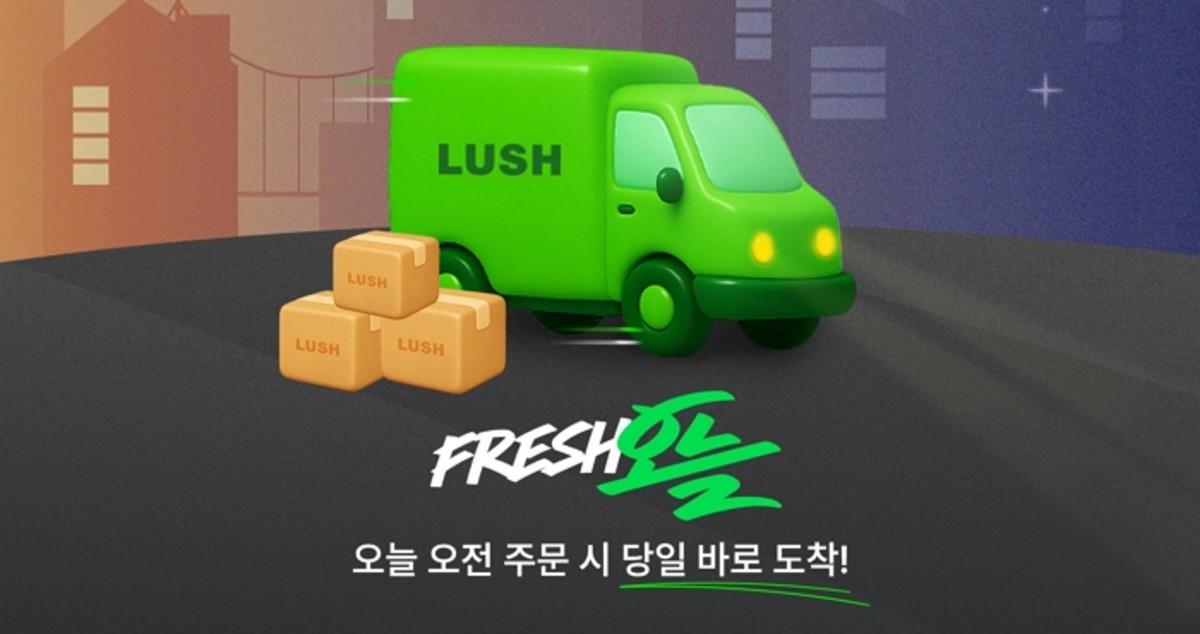 러쉬코리아 자사 앱에서 이용 가능하며, 서울·경기·인천 일부 지역을 대상으로 오후 12시 30분 이전 주문 건을 당일 자정까지 배송합니다.