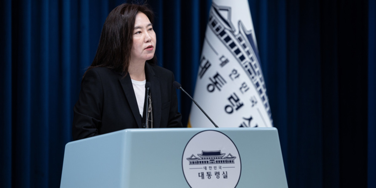 강유정 대통령실 대변인이 26일 서울 용산 대통령실 청사에서 사법 현안 관련 브리핑을 하고 있다 / 뉴스1
