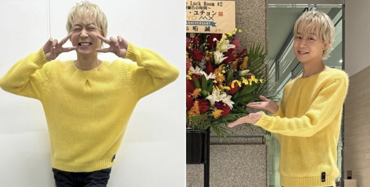 공개된 이미지에서 박유천은 노란색 니트를 착용한 모습으로 팬들에게 인사를 전했습니다.