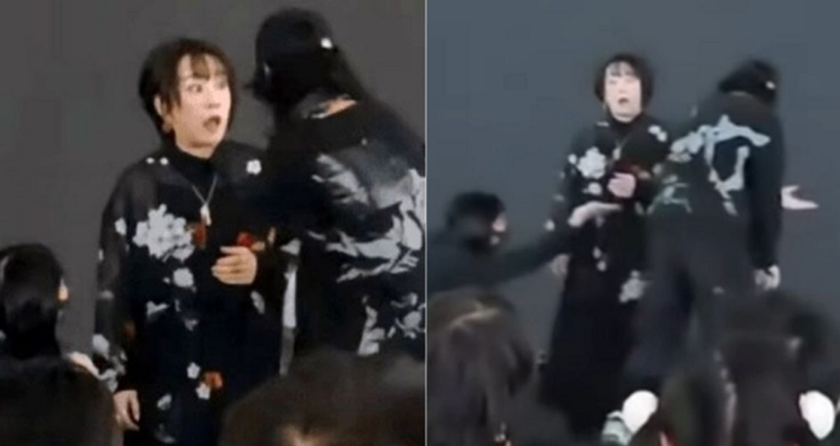 공연 도중 갑자기 조명이 차단되고 음악이 정지된 가운데, 스태프로 보이는 두 명이 오쓰키에게 접근해 무언가를 전달한 후 그는 서둘러 무대를 떠났습니다.