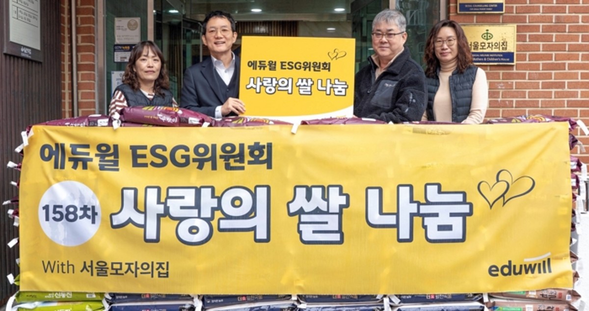 에듀윌은 2일 158회차 '사랑의 쌀 나눔' 행사를 진행하며 서울모자의집에 쌀 100포대를 기부했다고 발표했습니다.