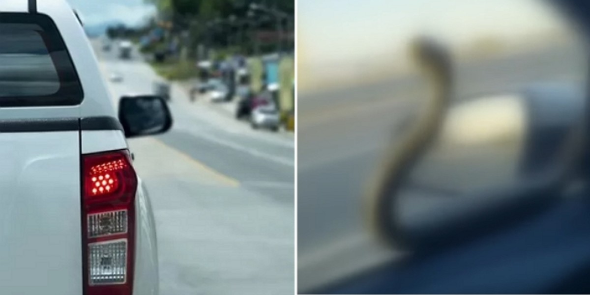 운전자는 구렁이가 차량에서 떨어지기를 기다리며 약 20분간 계속 주행했지만, 구렁이는 꿈쩍하지 않았습니다.