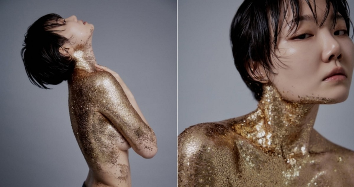 이번 촬영에서 손수아는 맨몸에 오직 골드 글리터만을 활용해 콘셉트를 구현해 눈길을 끌었습니다.