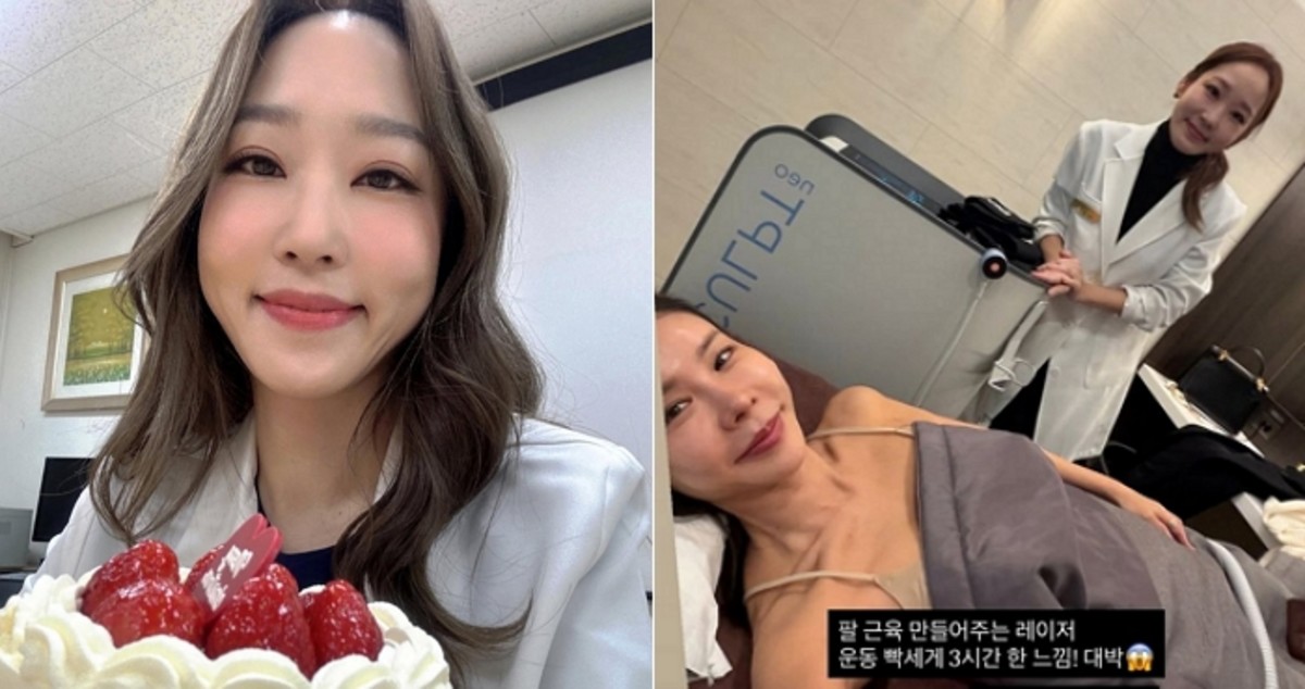 김준희는 '팔 근육 만들어주는 레이저 시술'을 체험하는 모습을 공개하며 "운동 3시간 한 느낌, 대박"이라고 시술 효과에 대한 만족감을 드러냈습니다. 공개된 사진에는 한수민이 의사 가운을 착용하고 직접 시술을 진행하는 전문적인 모습이 담겨 있었습니다.