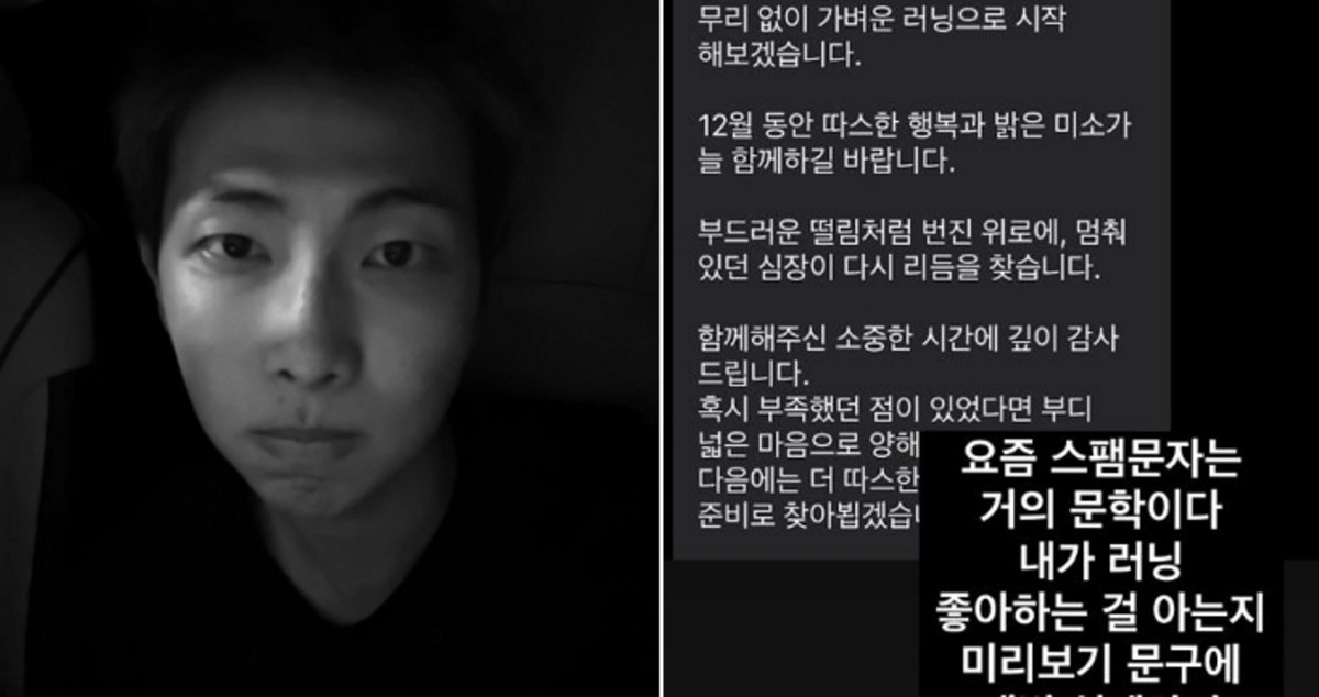 RM은 이러한 스팸 문자에 대해 "내가 러닝 좋아하는 걸 아는지 미리보기 문구에 매번 설레하며 또 낚인다"며 자신도 모르게 속아넘어가게 되는 상황을 솔직하게 털어놓았습니다.