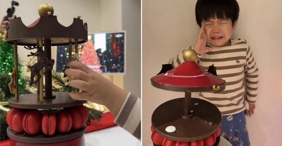 케이크 위에는 빨간 마카롱 장식과 함께 정교하게 만들어진 초콜릿 회전목마가 실제로 돌아가는 모습이 담겨 있었습니다. 루돌프가 탑승한 회전목마는 케이크라기보다는 예술 작품에 가까운 완성도를 보여주었습니다.