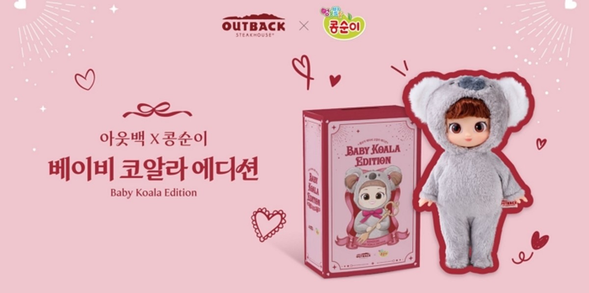 이번 에디션의 핵심은 아웃백의 브랜드 아이덴티티인 코알라 코스튬을 착용한 콩순이 인형과 이를 담는 특별한 패키지입니다.
