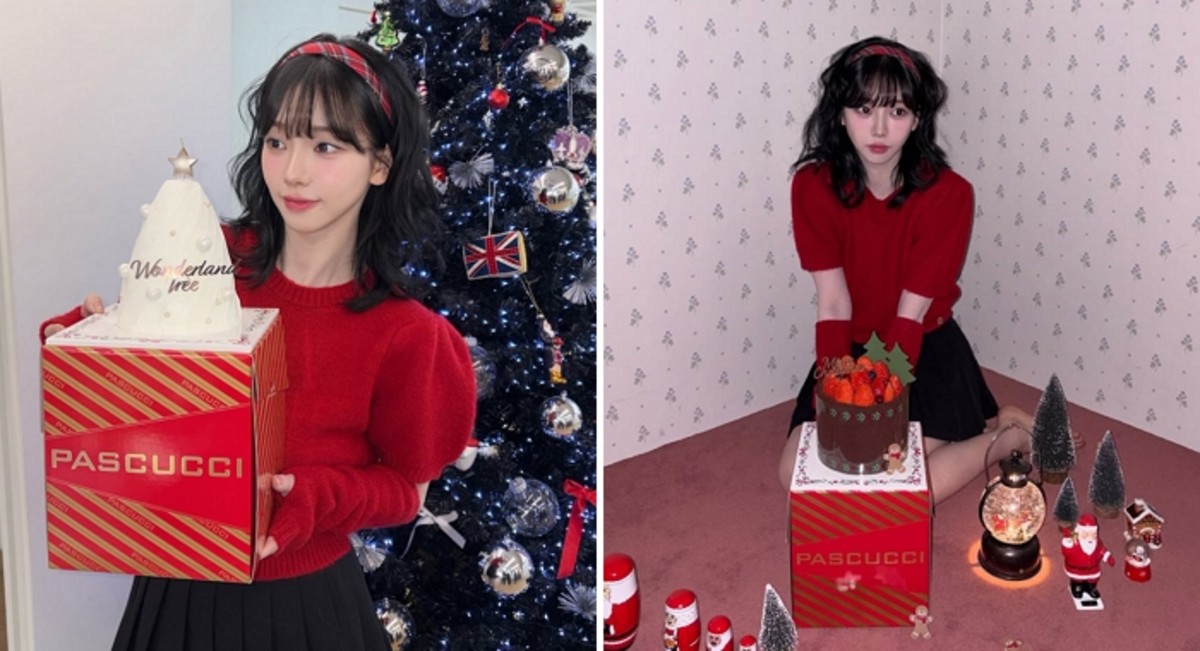 공개된 사진에서 카리나는 다양한 디자인의 크리스마스 케이크를 들고 포즈를 취하고 있는 모습이 담겼습니다.