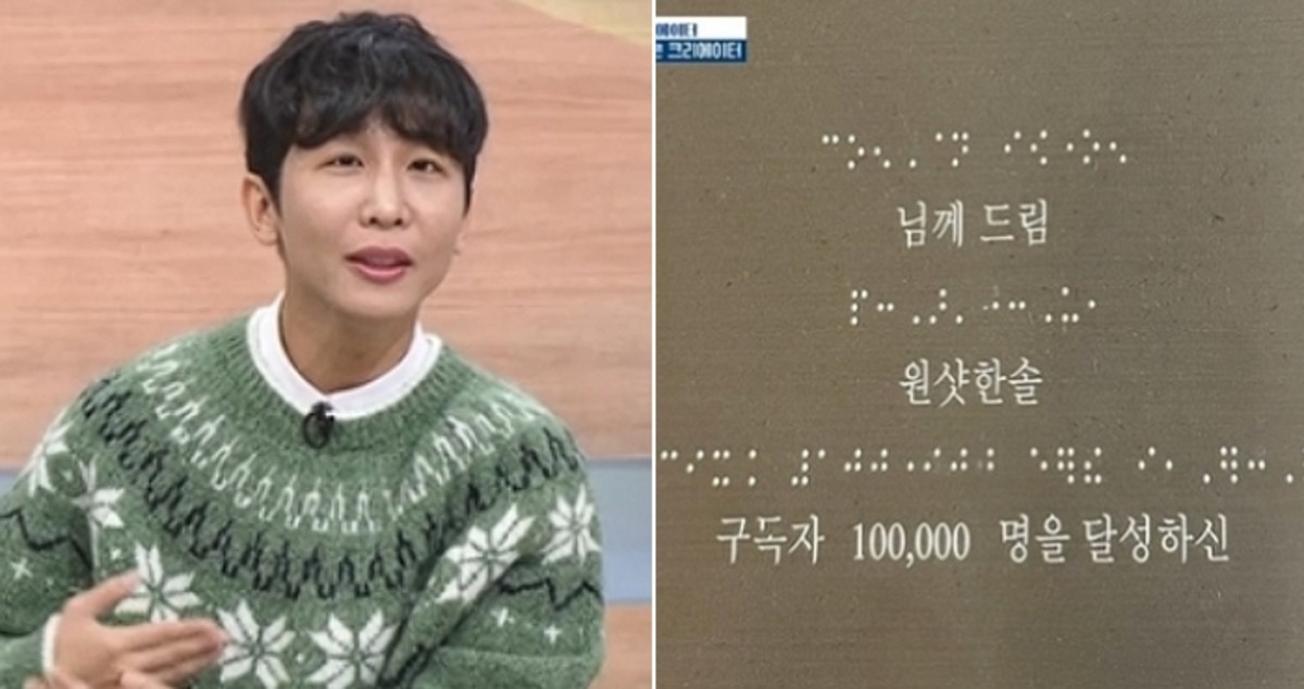 시각장애 유튜버 김한솔이 세계 최초로 점자 실버 버튼을 받았다고 공개했습니다.
