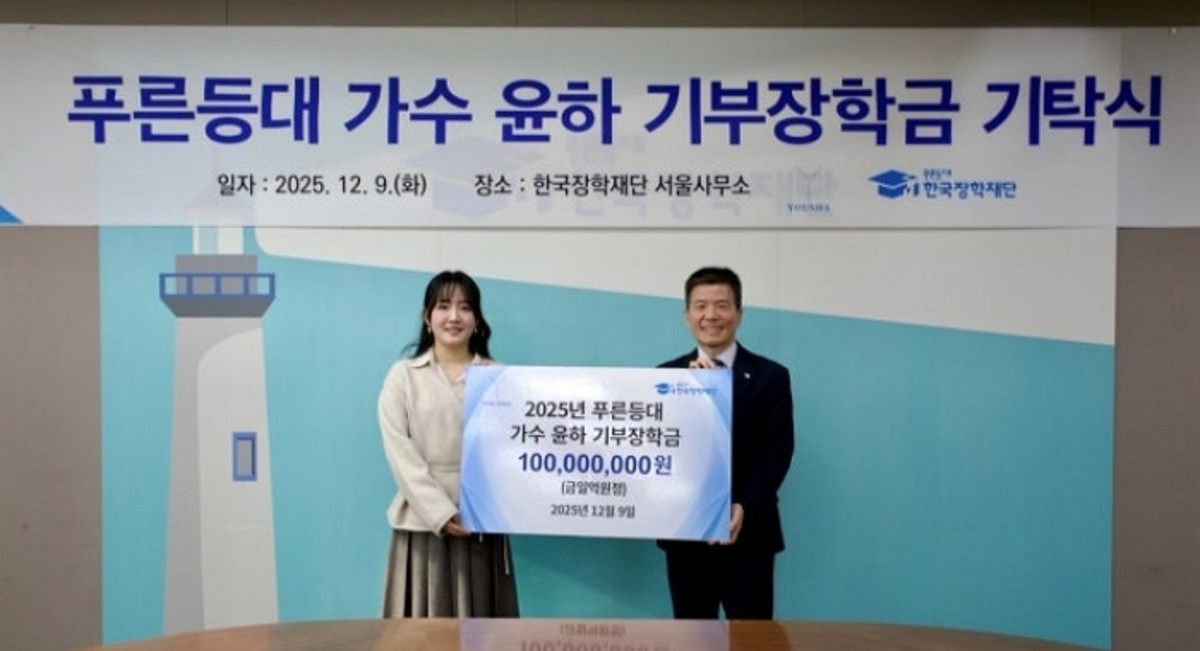 10일 한국장학재단은 전날(9일) 윤하가 서울 중구 한국장학재단 서울사무소에서 열린 '2025년 푸른등대 가수 윤하 기부장학금' 기탁식에 참석했다고 밝혔습니다.