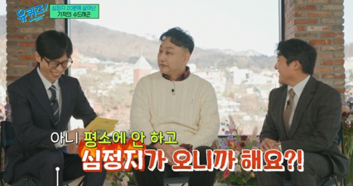 지난 10일 방송된 tvN '유퀴즈 온 더 블럭'에서 심정지 후 회복 중인 김수용이 출연해 당시 상황을 생생하게 전했습니다.