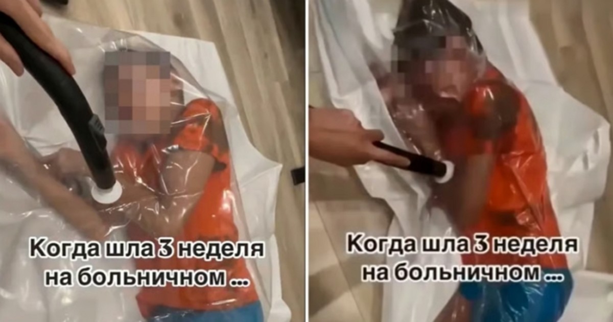 러시아의 한 여성 인플루언서가 10살 아들을 진공포장 비닐봉지에 넣고 공기를 빨아들이는 영상을 소셜미디어에 게시해 논란이 일고 있습니다.