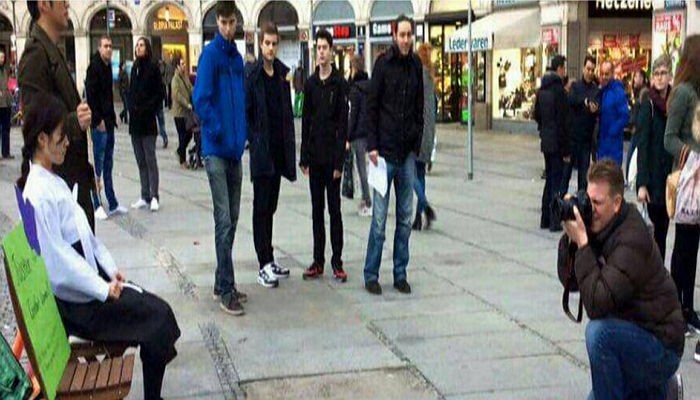 지난 5일 '진보한국을 위한 유럽연대(유럽연대)'는 일본군 위안부 문제가 심각한 여성 인권 침해라는 사실을 알리기 위해 독일 뮌헨 '칼츠플라츠' 광장에서 '라이브 소녀상(살아있는 소녀상)' 퍼포먼스를 선보였다.