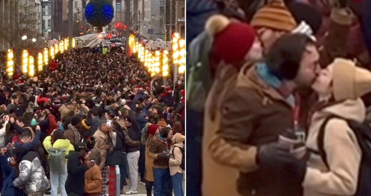 이날 오후 워싱턴DC 도심 쇼핑몰에 모인 커플들은 거대한 겨우살이 조형물 아래에서 5초간 동시 키스를 진행했습니다. 이로써 기존 기네스북의 '겨우살이 밑에서 키스하는 커플 수' 기록을 새로 갈아치웠습니다.