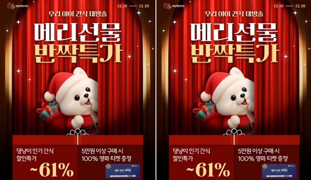 오는 16일부터 18일까지 3일간 진행되는 '메리선물 반짝특가' 프로모션을 통해 반려동물용 보양죽과 간식을 최대 61% 할인된 가격에 만나볼 수 있습니다.